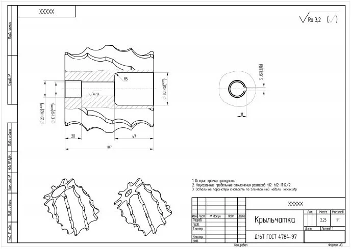 Based on the model, a drawing was made indicating the required parameters: