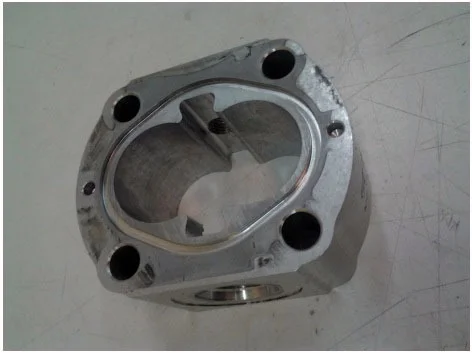 The gear pump housing is cracked on one side: