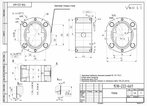 The specialists also made a drawing indicating all the necessary parameters. At the customer’s request, one of the walls in the model and in the drawing was thickened in order to strengthen the structure: